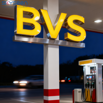 لافتة مضيئة بإضاءة أمامية بإطار معدني ممتاز من skysued ، علامة شعار بحروف مضيئة للعلامات التجارية لمحطات الوقود ومحطة الوقود